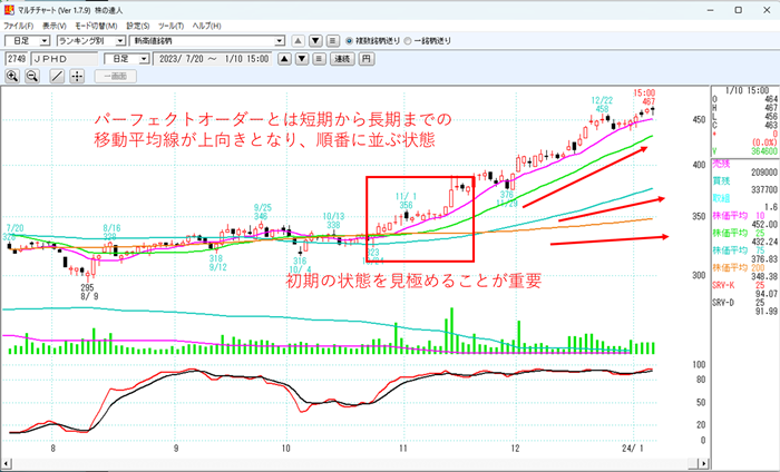 パーフェクトオーダーのチャート例(出典: 株の達人)