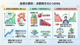 「好決算だから戻るはず」という期待で損切りラインを曖昧にするのが最も危険なパターンだ。含み損が膨らむ前に、自分のルールを確認する。