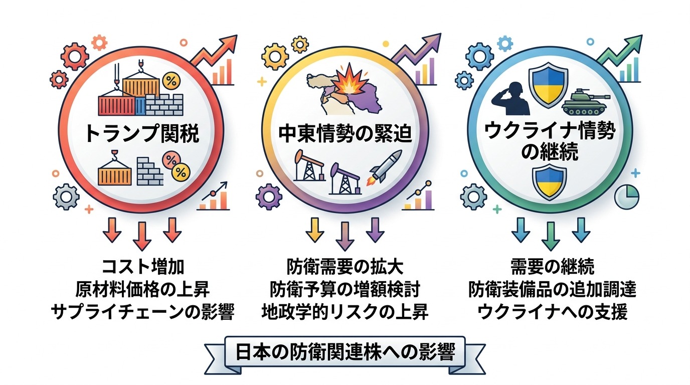 🌍 3つのリスクが防衛株に与える影響(整理)