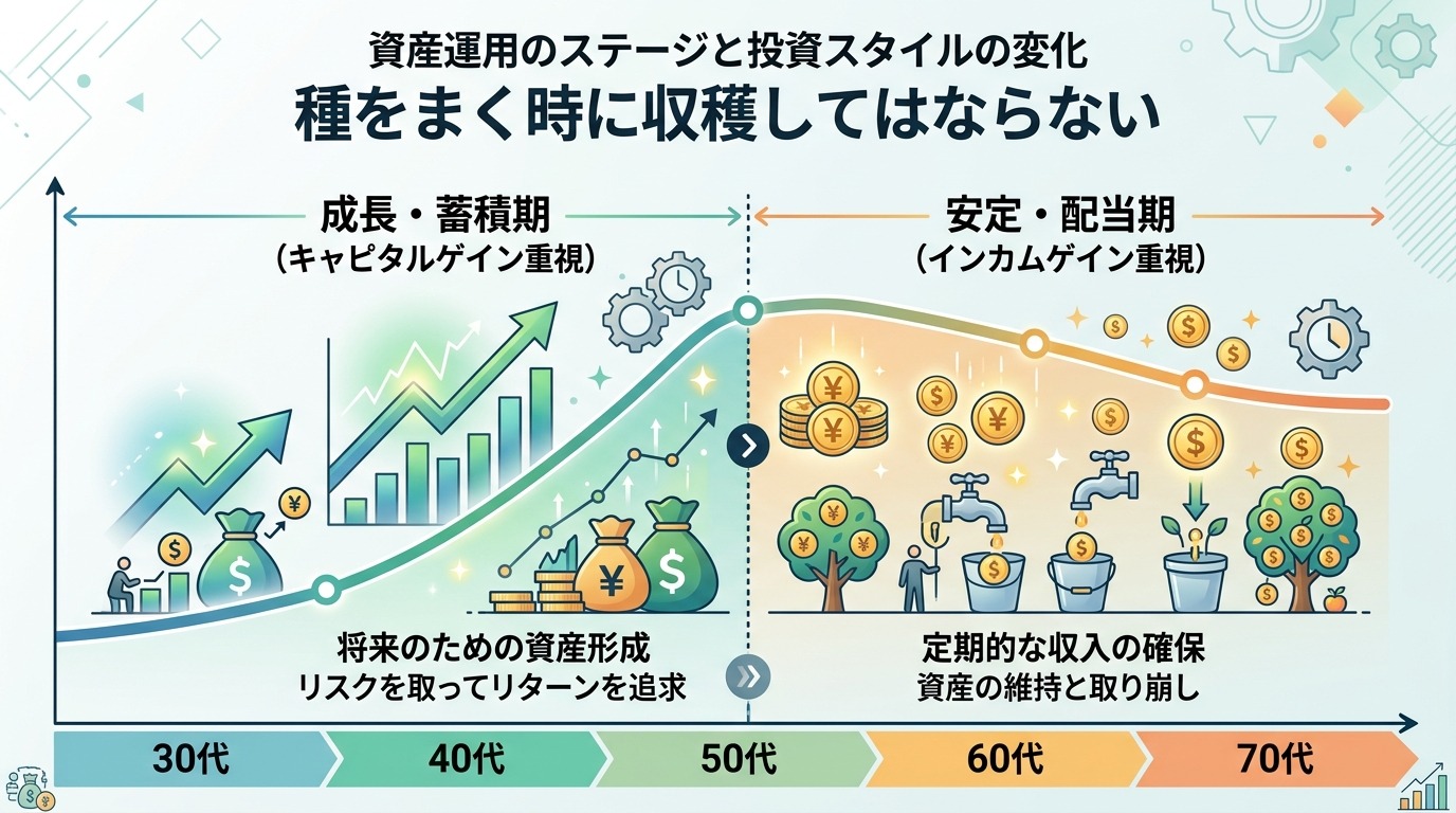 問題は、この「フェーズ」を無視して、資産形成期のど真ん中にいる30〜50代が「配当さえ入ればいい」とインカム偏重に傾いていることだ。