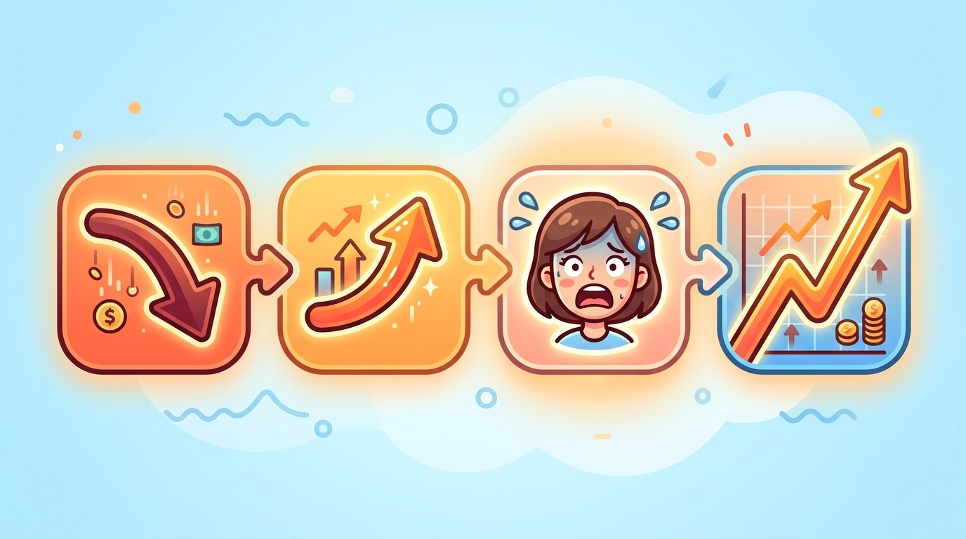 そして踏み上げ相場の「祭りの後」──急騰に飛びついて高値を掴むのも、多くの場合は個人投資家です。機関投資家は利益確定のタイミングを組織的に判断できますが、個人は「まだ上がるかも」という期待と恐怖の間で揺れやすい。